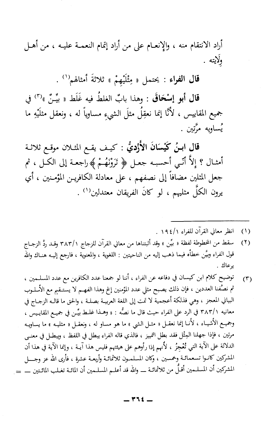 اراد الانتقام منه والانعام على من أراد إتمام النعمة عليه من أهل ولايته قال الفراء يحتمل مثليهم ثلاثة امثالهم قال أبو اسحاق وهذا باب الغلط فيه غلط بين في جميع المقايس لانا أنما نعقل مثل الشئ مساويا له ونعقل مثليه ما يساوي مرتين قال ابن كيسان الازدي كيف يقع المثلان موقع ثلاثة امثال الا اني أحسبه جعل ترونهم راجعة الى الكل ثم جعل المثلين مضافا الى نصفهم على معادلة الكافرين المؤمنين أي يرون الكل مثليهم لو كان الفريقان معتدلين