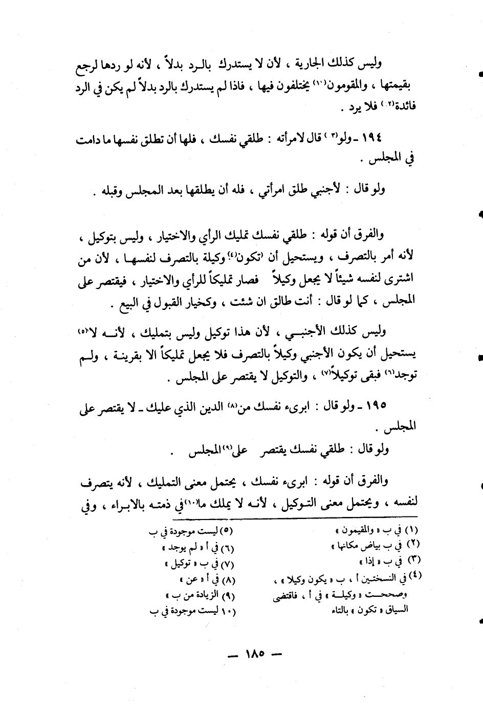 195 - وَلَوْ قَالَ: أَبْرِئْ نَفْسَكَ مِنْ الدَّيْنِ الَّذِي عَلَيْكَ؛ لَا يَقْتَصِرُ عَلَى الْمَجْلِسِ.