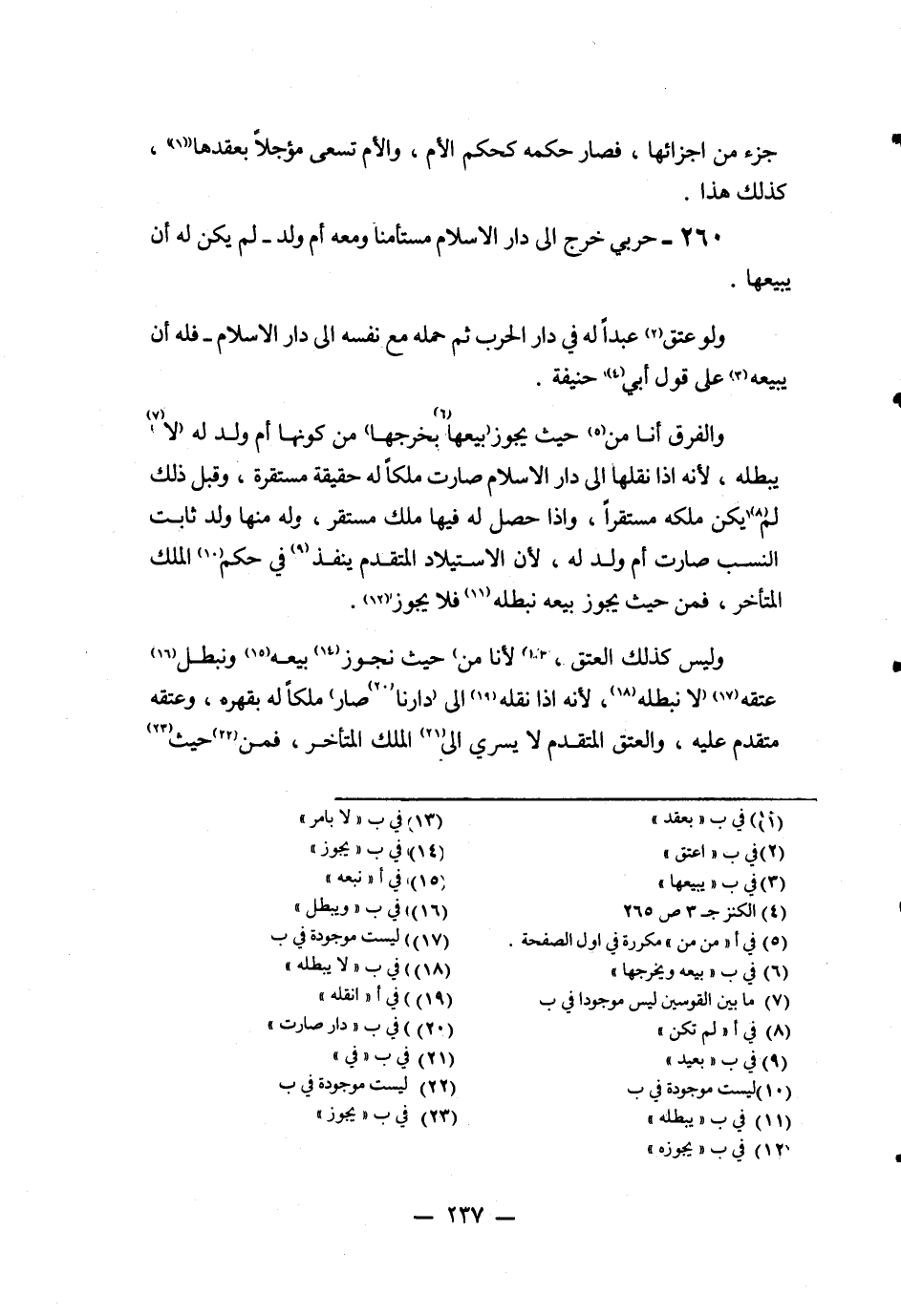 260 - حَرْبِيٌّ خَرَجَ إلَى دَارِ الْإِسْلَامِ مُسْتَأْمِنًا وَمَعَهُ أُمُّ وَلَدٍ؛ لَمْ يَكُنْ لَهُ أَنْ يَبِيعَهَا.