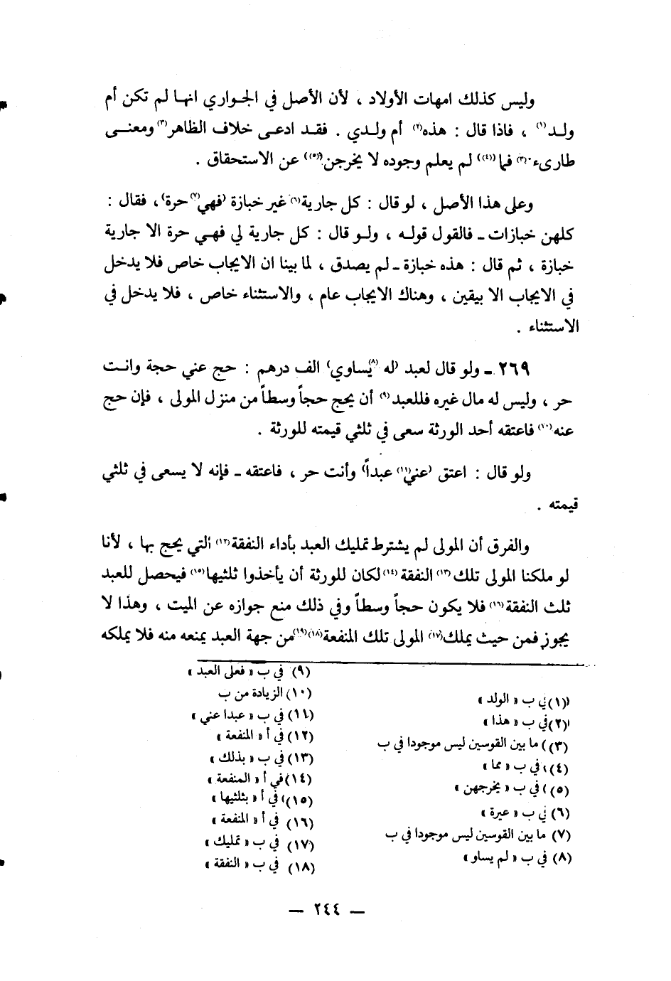 269 - وَلَوْ قَالَ لِعَبْدٍ لَهُ يُسَاوِي أَلْفَ دِرْهَمٍ: حُجَّ عَنِّي حَجَّةً وَأَنْتَ حُرٌّ، وَلَيْسَ لَهُ مَالٌ غَيْرَهُ فَلِلْعَبْدِ أَنْ يَحُجَّ حَجًّا وَسَطًا مِنْ مَنْزِلِ الْمَوْلَى، فَإِنْ حَجَّ عَنْهُ فَأَعْتَقَهُ أَحَدُ الْوَرَثَةِ سَعَى فِي ثُلُثَيْ قِيمَتِهِ لِلْوَرَثَةِ.