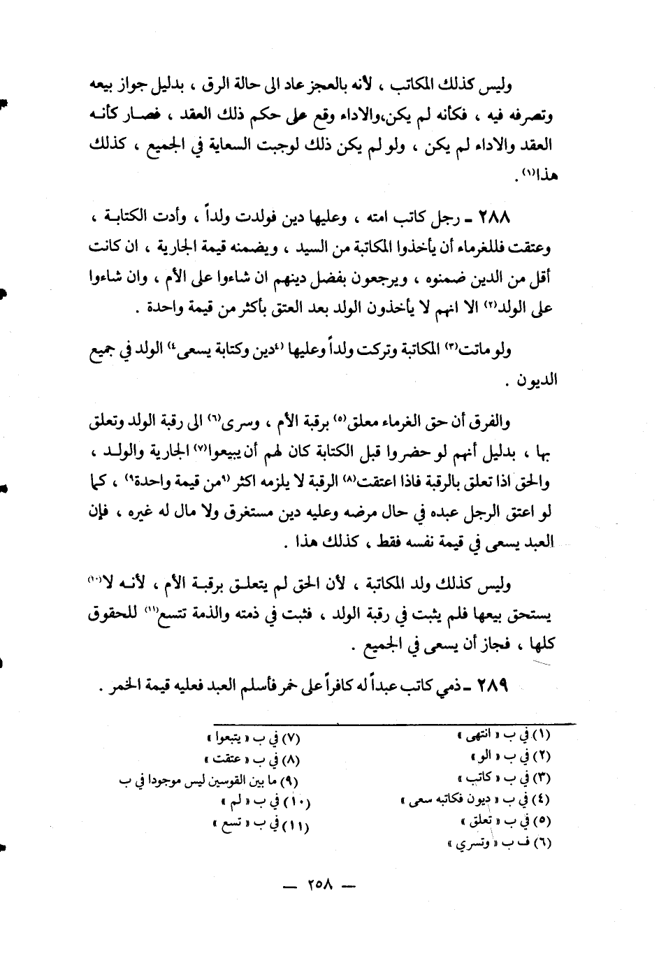 289 -؛ ذِمِّيٌّ كَاتَبَ عَبْدًا لَهُ كَافِرًا عَلَى خَمْرٍ فَأَسْلَمَ الْعَبْدُ فَعَلَيْهِ قِيمَةُ الْخَمْرِ.