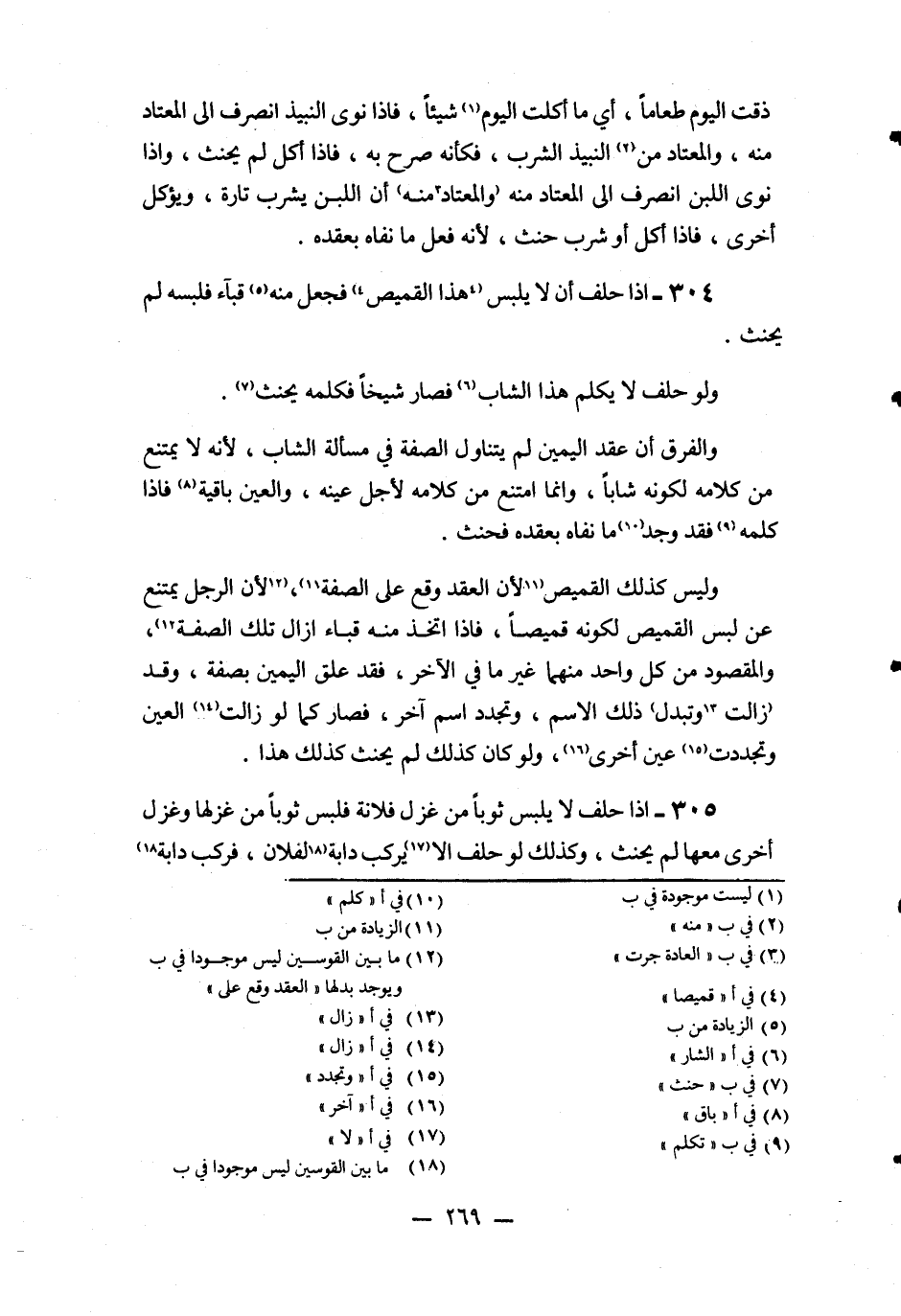 305 - إذَا حَلَفَ لَا يَلْبَسُ ثَوْبًا مِنْ غَزْلِ فُلَانَةَ فَلَبِسَ ثَوْبًا مِنْ غَزْلِهَا وَغَزْلِ أُخْرَى مَعَهَا لَمْ يَحْنَثْ، وَكَذَلِكَ لَوْ حَلَفَ أَلَّا يَرْكَبَ دَابَّةً لِفُلَانٍ، فَرَكِبَ دَابَّةً
