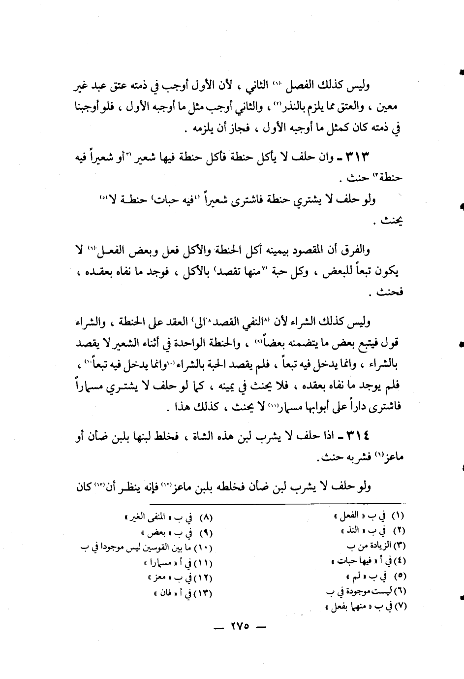 313 - وَإِنْ حَلَفَ لَا يَأْكُلُ حِنْطَةً فَأَكَلَ حِنْطَةً فِيهَا شَعِيرٌ؛ أَوْ شَعِيرًا فِيهِ حِنْطَةٌ حَنِثَ.