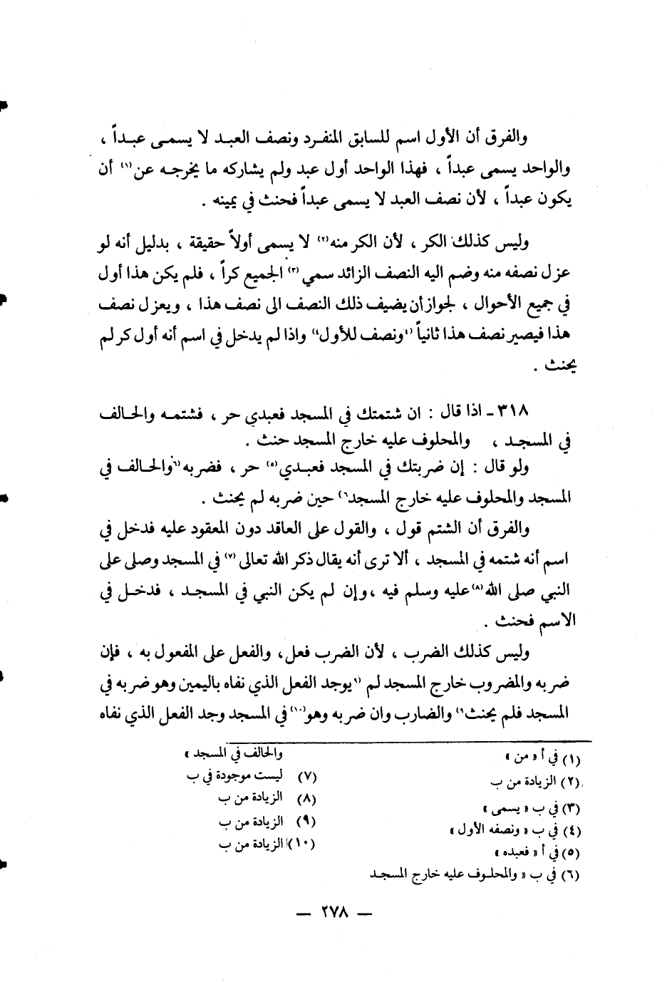 318 - إذَا قَالَ: إنْ شَتَمَتْك فِي الْمَسْجِدِ فَعَبْدِي حُرٌّ، فَشَتَمَهُ وَالْحَالِفُ فِي الْمَسْجِدِ، وَالْمَحْلُوفُ عَلَيْهِ خَارِجَ الْمَسْجِدِ حَنِثَ.