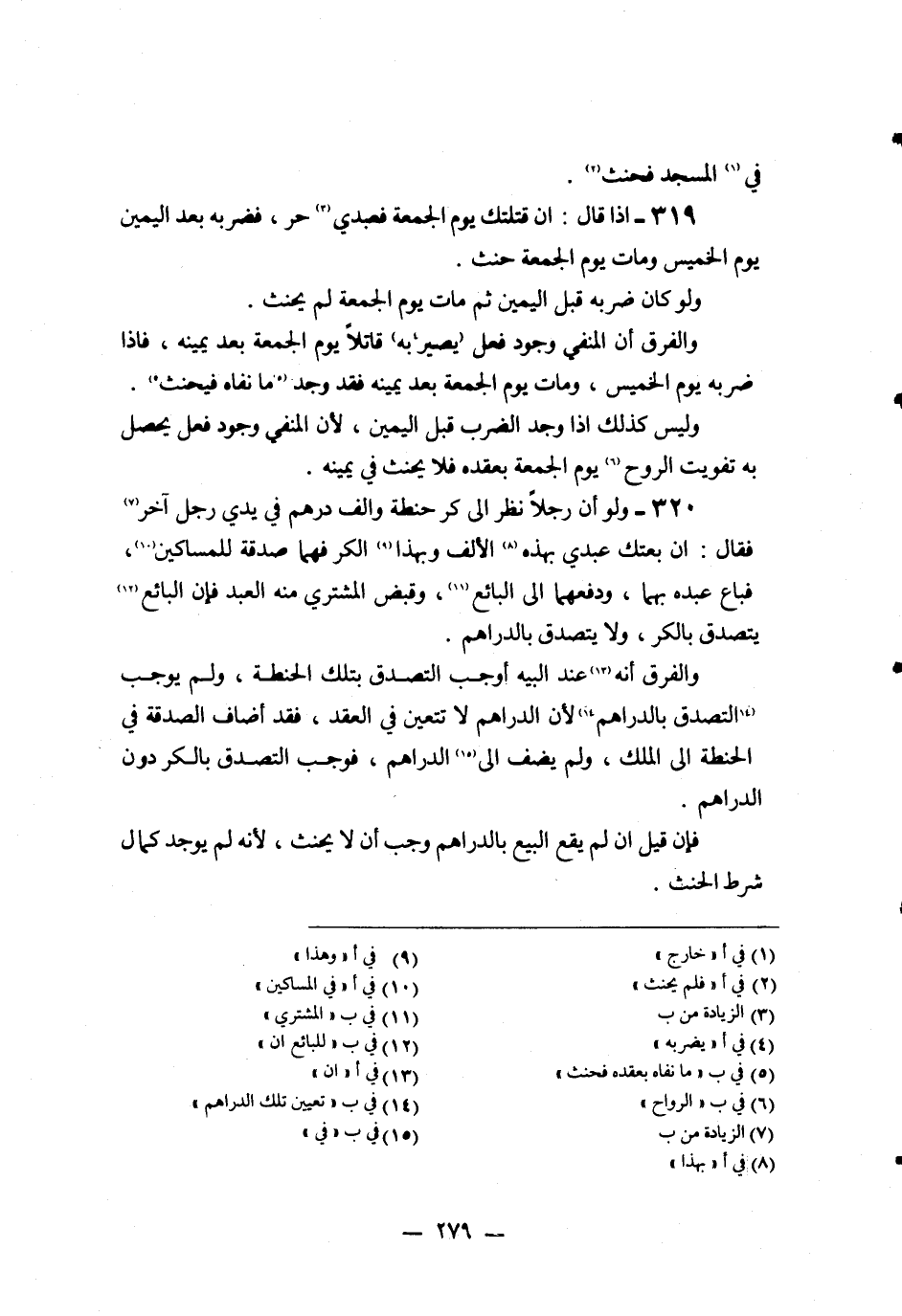 319 - إذَا قَالَ: إنْ قَتَلْتُكَ يَوْمَ الْجُمُعَةِ فَعَبْدِي حُرٌّ، فَضَرَبَهُ بَعْدَ الْيَمِينِ يَوْمَ الْخَمِيسِ وَمَاتَ يَوْمَ الْجُمُعَةِ حَنِثَ.