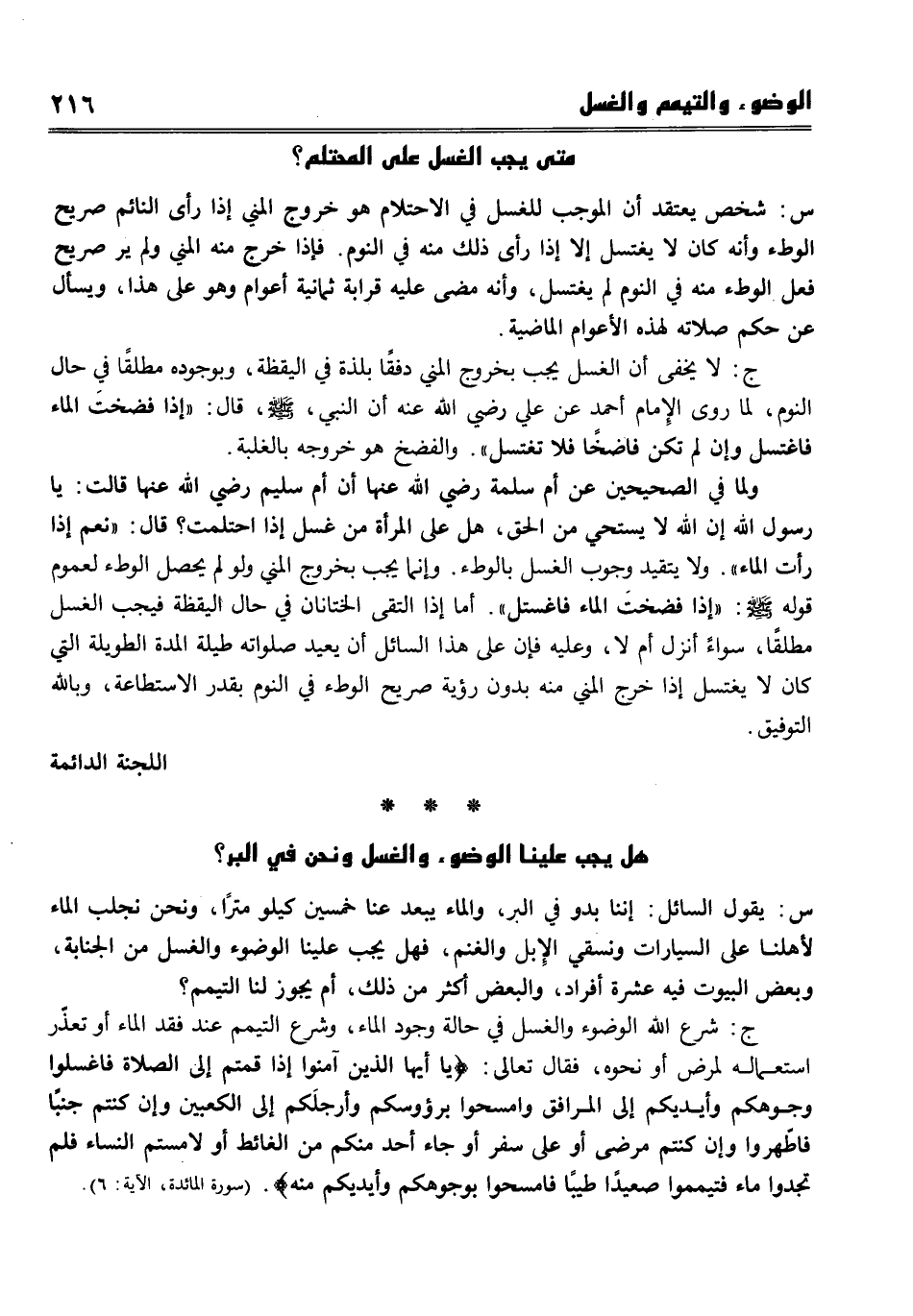 هل يجب علينا الوضوء والغسل ونحن في البر؟