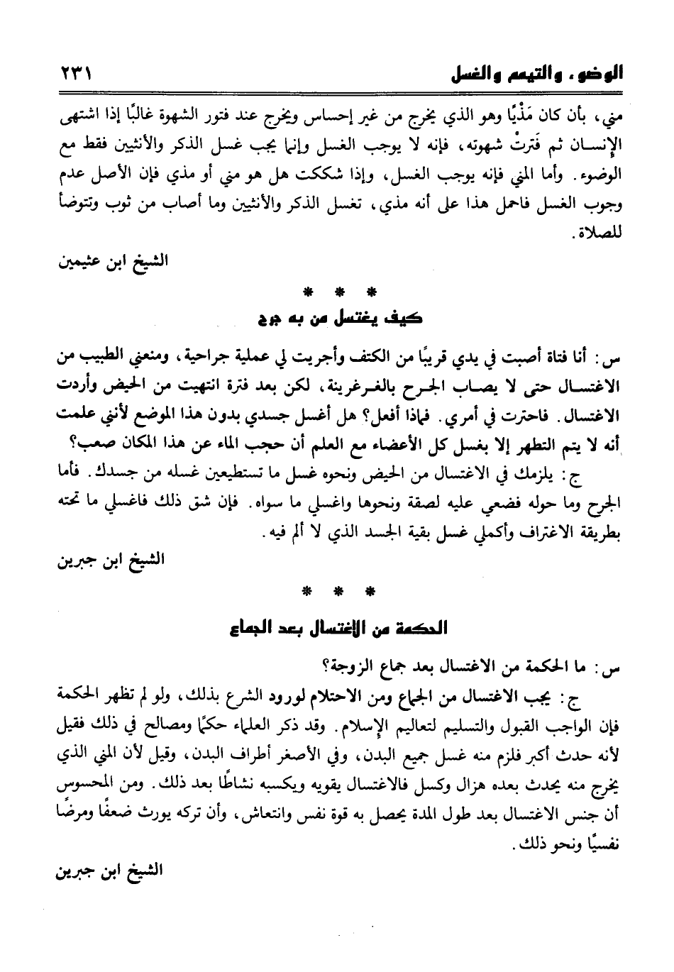 س ما الحكمة من الاغتسال بعد جماع الزوجة؟