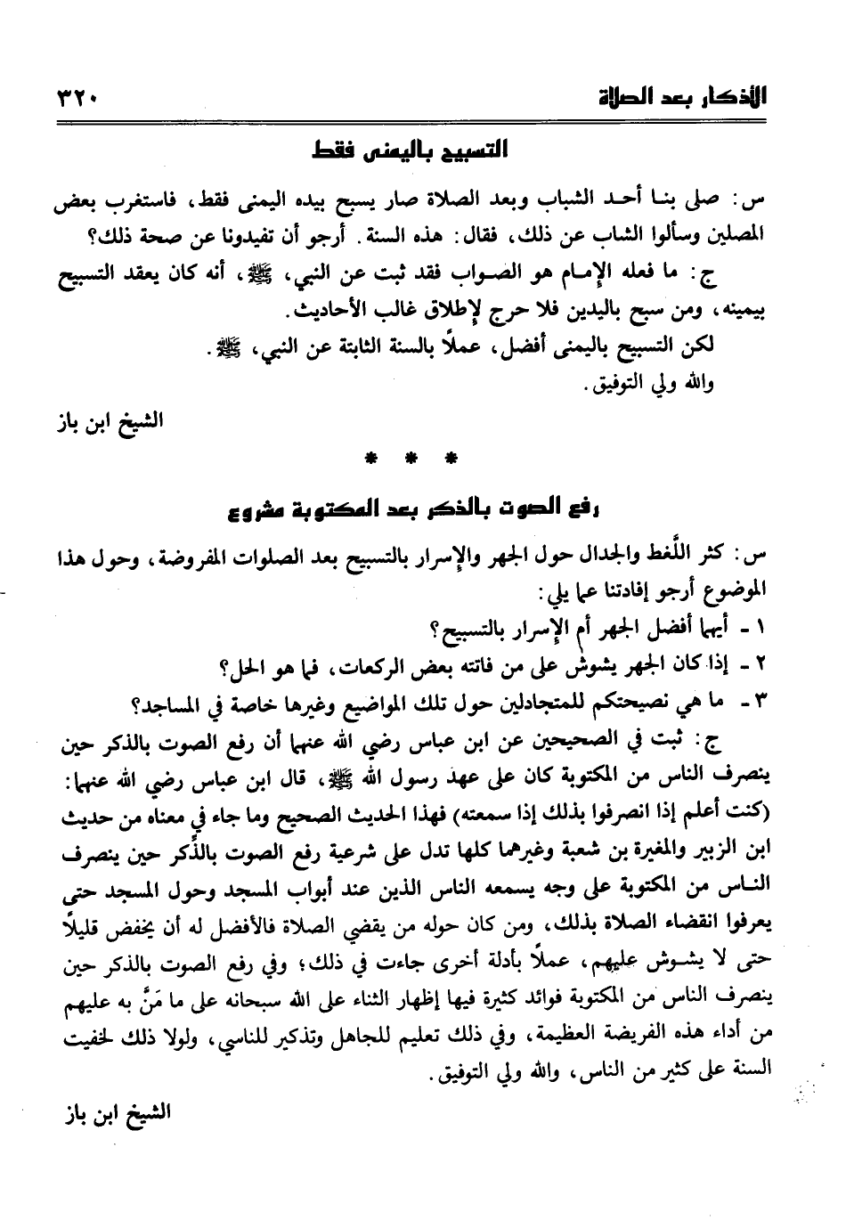 س صلى بنا أحد الشباب وبعد الصلاة صار يسبح بيده اليمنى فقط، فاستغرب بعض المصلين وسألوا الشاب عن ذلك، فقال هذه السنة. أرجو أن تفيدونا عن صحة ذلك؟