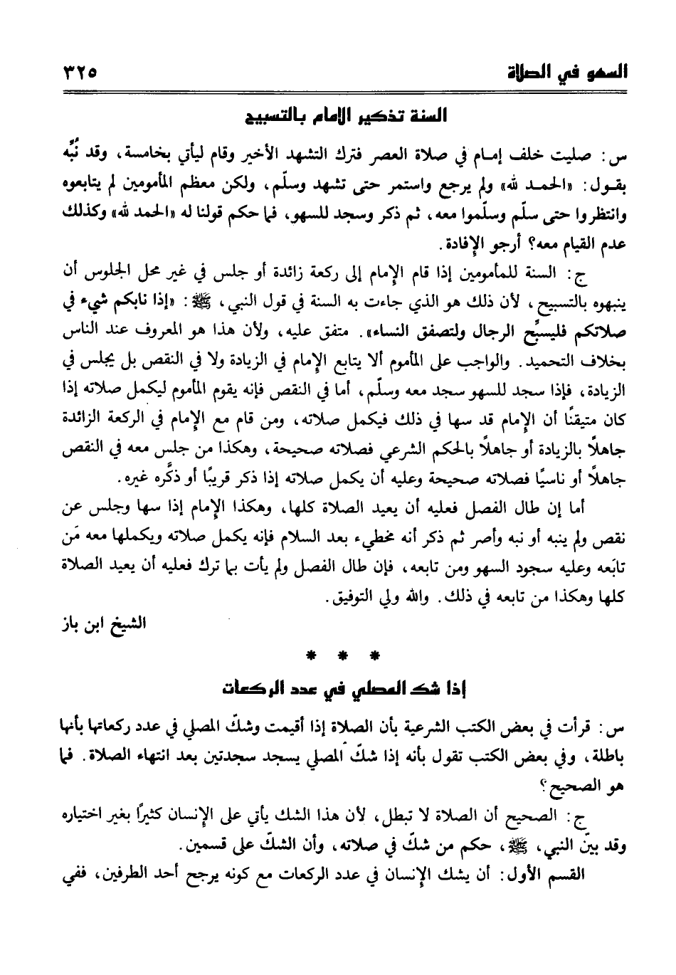 س قرأت في بعض الكتب بأن الصلاة إذا أقيمت وشك المصلي في عدد ركعاتها بأنها باطلة، وفي بعض الكتب بأنه إذا شك المصلي يسجد سجدتين بعد انتهاء الصلاة، فما هو الصحيح؟