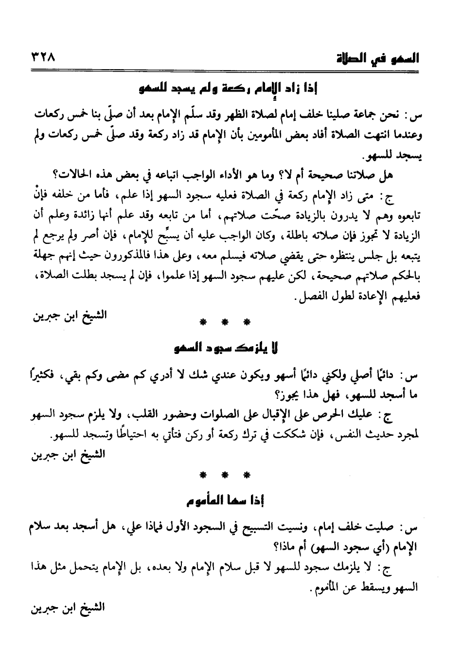 س نحن جماعة صلينا خلف إمام لصلاة الظهر وقد سلّم الإمام بعد أن صلّى بنا خمس ركعات وعندما انتهت الصلاة أفاد بعض المأمومين بأن الإمام قد زاد ركعة وقد صلّى خمس ركعات ولم يسجد للسهو. هل صلاتنا صحيحة أم لا؟ وما هو الأداء الواجب اتباعه في بعض هذه الحالات؟