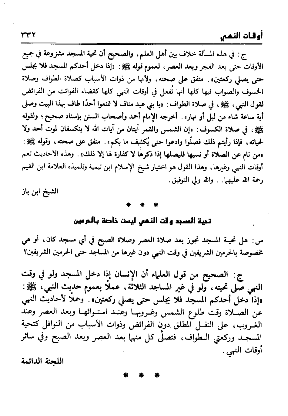 تحية المسجد وقت النهي ليست خاصة بالحرمين