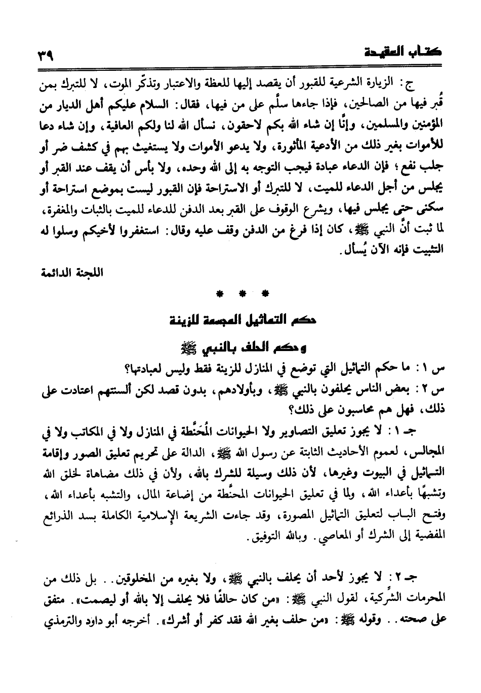 حكم التماثيل المجسمة للزينة وحكم الحلف بالنبي صلى الله عليه وسلم