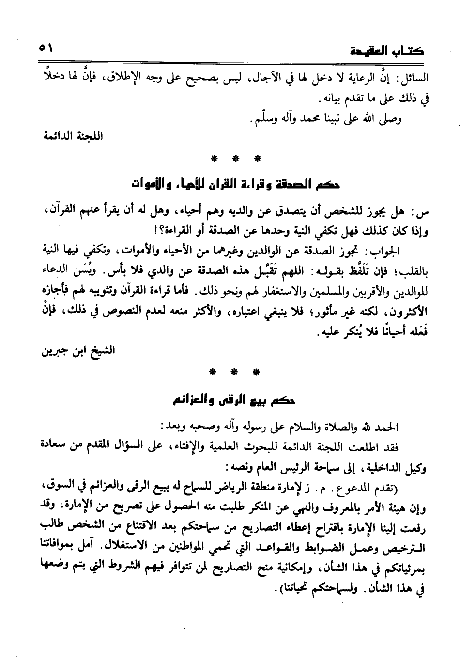 (تقدم المدعوع. م. ز لإمارة المنطقة الرياض للسماح له ببيع الرقى والعزائم في السوق، وإن هيئة الأمربالمعروف والنهي عن المنكر طلبت منه الحصول على تصريح من الإمارة، وقد رفعت إلينا الإمارة باقتراح إعطاء التصاريح من سماحتكم بعد الاقتناع من الشخص طالب الترخيص وعمل الضوابط والقواعد التي تحمي الموطنين من الاستغلال. آمل بموافاتنا بمرئياتكم في هذا الشأن، وإمكانية منح التصاريح لمن تتوافر فيهم الشروط التي يتم وضعها في هذا الشأن. ولسماحتكم تحياتنا) .