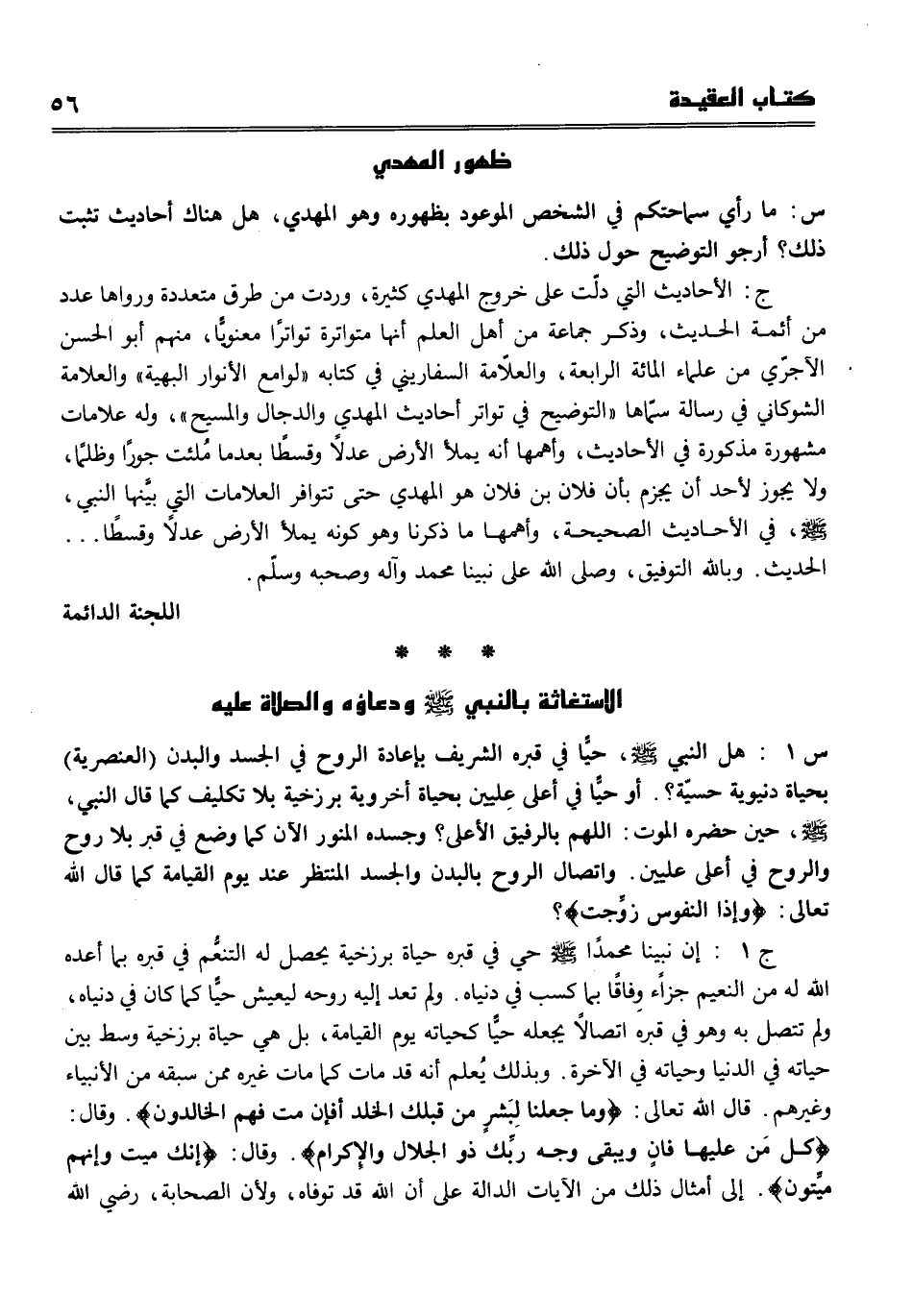 س س1 في حياة النبي صلى الله عليه وسلم أكان النبي صلى الله عليه وسلم حيا في قبره الشريف بإعادة الروح في الجسد والبدن (العنصرية) بحياة دنيوية حسية؟ . أو حيا في أعلى عليين بحياة أخروية برزخية بلا تكليف، كما قال النبي صلى الله عليه وسلم حين حضره الموت اللهم بالرفيق الأعلى، وجسده المنور الآن كما وضع في قبر بلا روح والروح في أعلى عليين. واتصال الروح بالبدن والجسد المعطر عند يوم القيامة، كما قال تعالى {وَإِذَا النُّفُوسُ زُوِّجَتْ} .