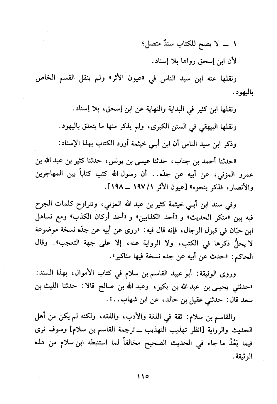 والقاسم بن سلام: ثقة في اللغة والأدب، والفقه، ولكنه لم يكن من أهل الحديث والرواية [انظر تهذيب التهذيب ـ ترجمة قاسم بن سلام] وسوف نرى فيما بعد ما جاء في الحديث الصحيح مخالفاً لما استنبطه ابن سلام من هذه الوثيقة.