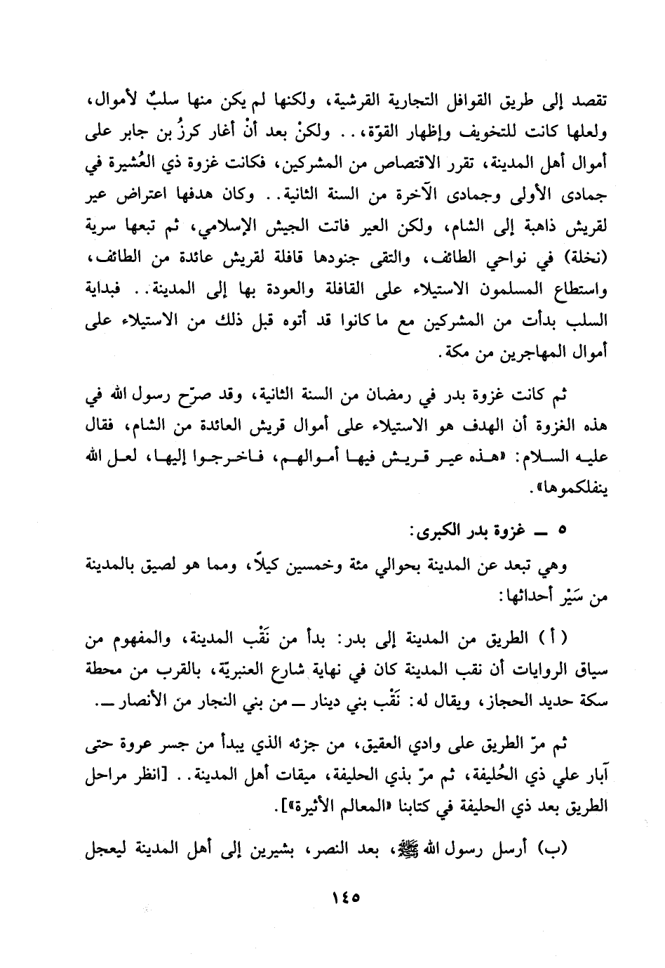 وهي تبعد عن المدينة بحوالى مئة وخمسين كيلا، ومما هو لصيق بالمدينة من سير أحداثها: (أ) الطريق من المدينة الى بدر: بدأ من نقب المدينة، والمفهوم من سياق الروايات أن نقب المدينة كان في نهاية شارع العنبرية، بالقرب من محطة سكة حديد الحجاز , ويقال له: نقب بني دينار _ من بني النجار من الأنصار _.
