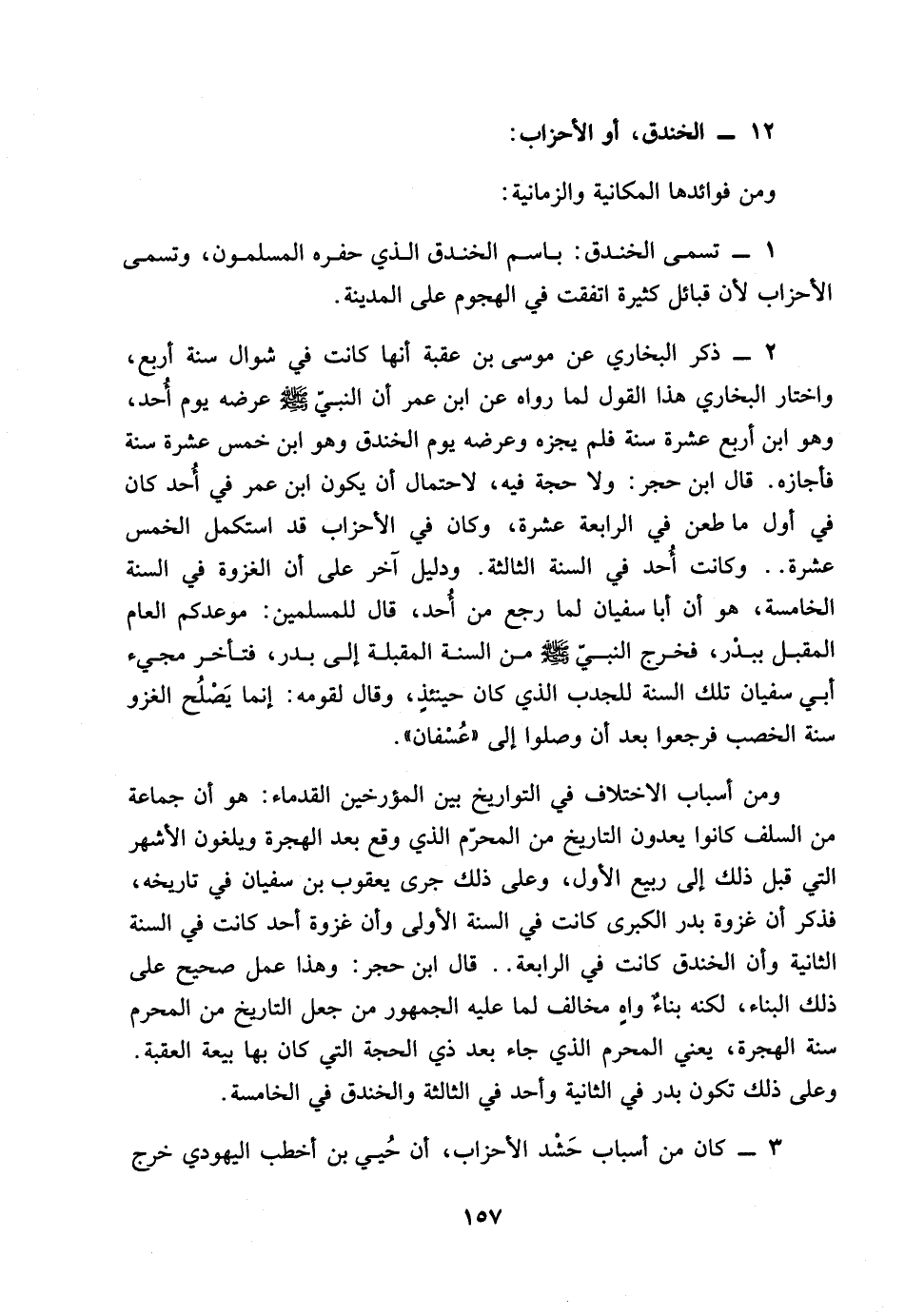 ومن أسباب الاختلاف في التواريخ بين المؤرخين القدماء: هو أن جماعة من السلف كانوا يعدون التاريخ من المحرم الذي وقع بعد الهجرة ويلغون الاشهر التي قبل ذلك إلى ربيع الأول، وعلى ذلك جرى يعقوب بن سفيان في تاريخه، فذكر أن غزوة بدر الكبرى كانت في السنة الاولى وأن غزوة احد كانت في السنة الثانية وان الخندق كانت في الرابعة .. قال ابن حجر: وهذا عمل صحيح على ذلك البناء، لكنه بناء واه مخالف لما عليه الجمهور من جعل التاريخ من المحرم سنة الهجرة، يعني المحرم الذي جاء بعد ذي الحجة التي كان بها بيعة العقبة. وعلى ذلك تكون بدر في الثانية وأحد في الثالثة والخندق في الخامسة.