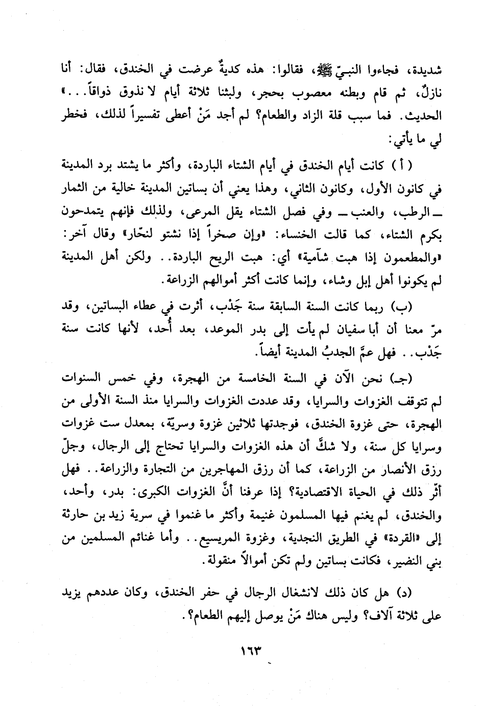 (د) هل كان ذلك لانشغال في حفر الخندق، وكان عددهم يزيد على ثلاثة آلاف؟ وليس هناك من يوصل إليهم الطعام؟.