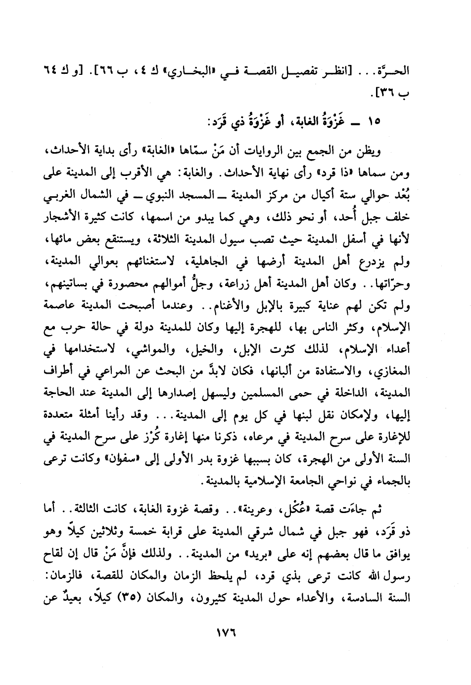 ثم جاءت قصة ((عكل، وعرينة)) .. وقصة غزوة الغابة، كانت الثالثة .. أما ذو قرد، فهو جبل في شمال شرقي المدينة على قرابة خمس وثلاثين كيلاً وهو يوافق ما قال بعضهم إنه على ((بريد)) من المدينة .. ولذلك فإن من قال أن لقاح رسول الله كانت ترعى بذي قرد، لم يلحظ الزمان والمكان للقصة، فالزمان: السنة السادسة، والأعداء حول المدينة كثيرون، والمكان (35) كيلاً، بعيد عن…