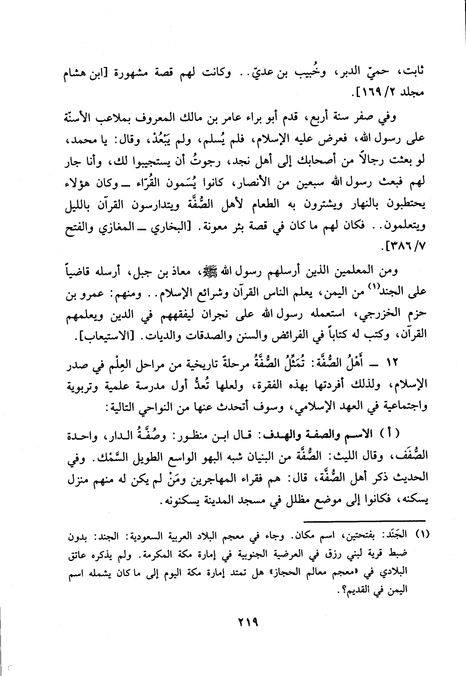 12 ـ أهل الصفة: تمثل الصفة مرحلة تاريخية من مراحل العلم في صدر الإسلام، ولذلك أفردتها بهذه الفقرة، ولعلها تعد أول مدرسة علمية وتربوية واجتماعية في العهد الاسلامي، وسوف اتحدث عنها من النواحي التالية: