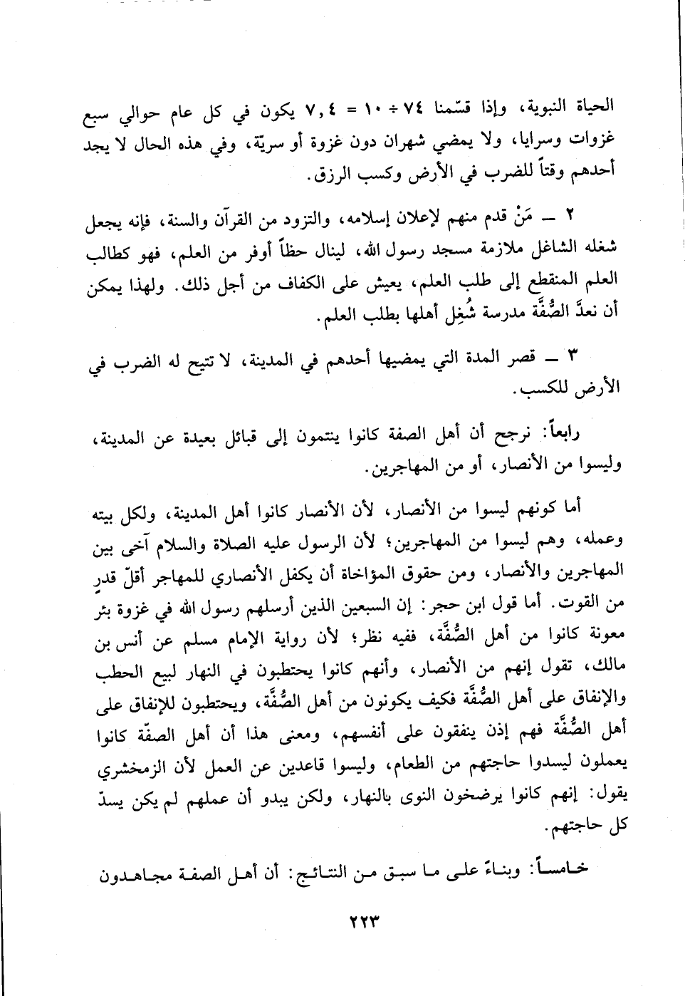 خامساً: وبناءً على ما سبق من النتائج: أن أهل الصفة مجاهدون…