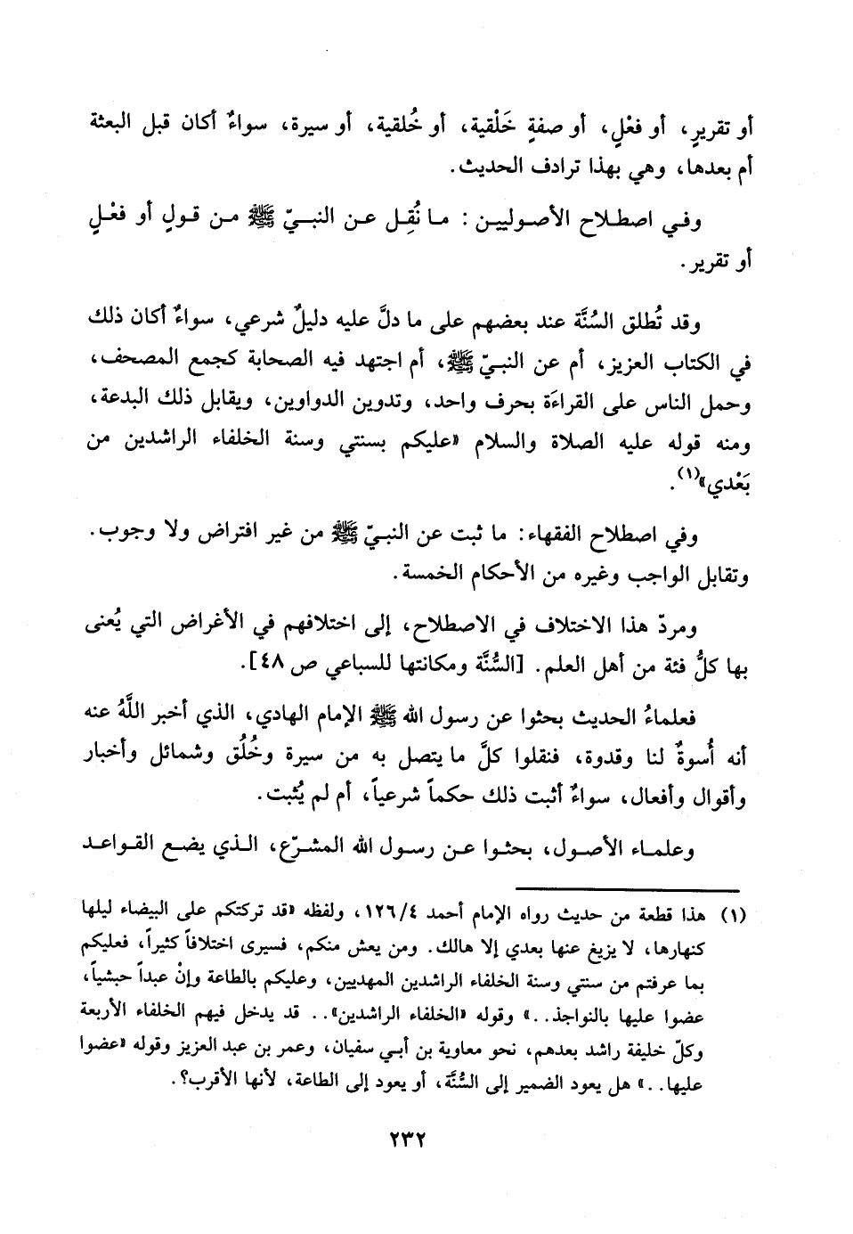 وعلماء الأصول، بحثوا عن رسول الله المشرع، الذي يضع القواعد… (1) هذه قطعة من حديث رواه الامام 4/ 126، ولفظه ((قد تركتم على البيضاء ليلها كنهارها، لا يزيغ عنها بعدي إلا هالك.