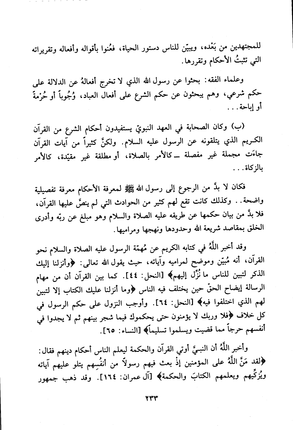 233…للمجتهدين من بعده، ويبين للناس دستور الحياة، فعنوا بأقواله وأفعاله وتقريراته التي تثبت الاحكام وتقررها.