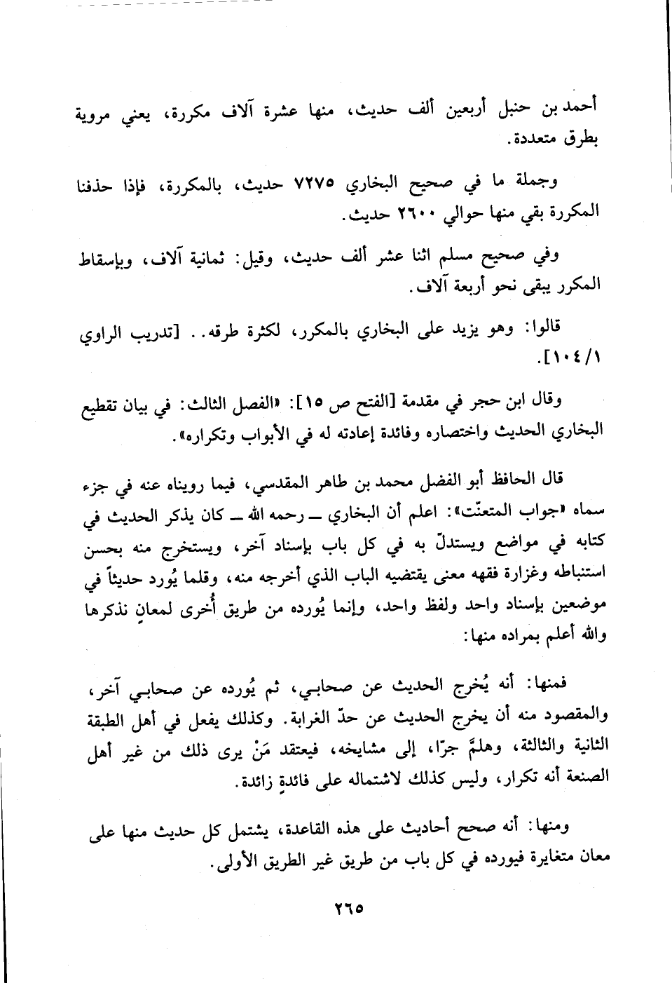 وجملة ما في صحيح البخاري 7275 حديث، بالمكررة، فاذا حذفنا المكررة بقي منها 2600 حديث.