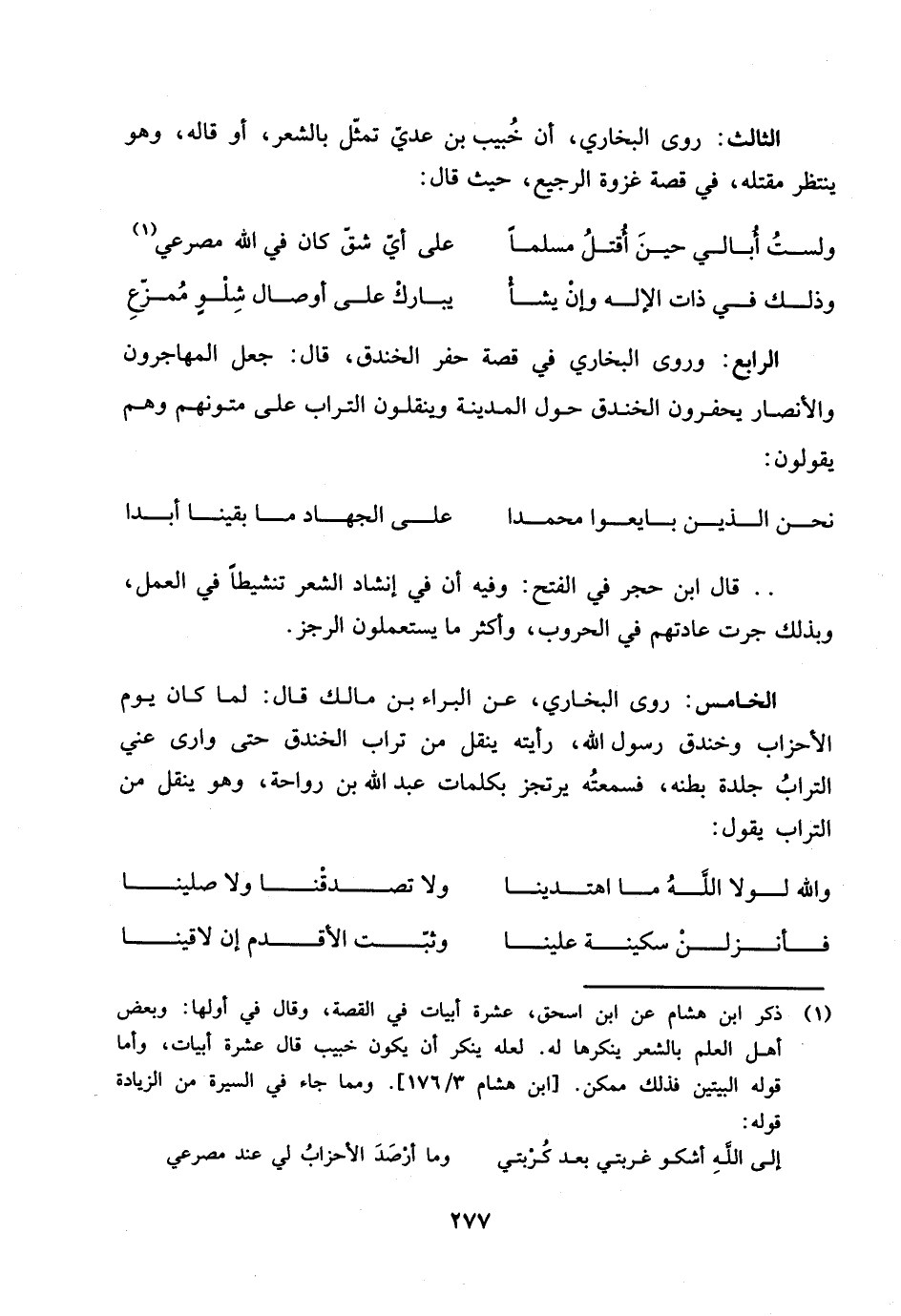 لعله ينكر ان يكون خبيب قال عشرة أبيات، وأما قوله البيتين فذلك ممكن. [ابن هشام 3/ 176]. ومما جاء في السيرة من الزيادة قوله: