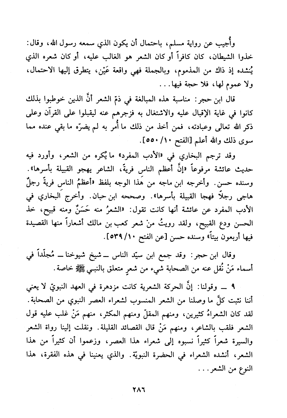9 ـ وقولنا: ان الحركة الشعرية كانت مزدهرة في العهد النبوي لا يعني أننا نثبت كل ما وصلنا من الشعر المنسوب لشعراء العصر النبوي من الصحابة.