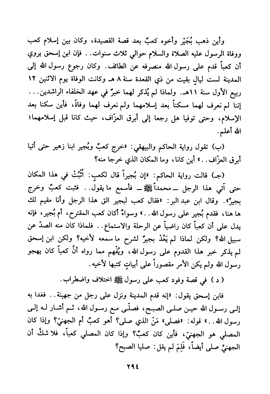 294…واين ذهب بجير وأخوه كعب بعد قصة القصيدة، وكان بين اسلام كعب ووفاة الرسول عليه الصلاة والسلام حوالي ثلاث سنوات .. فإن ابن إسحق يروي ان كعباً قدم على رسول الله منصرفه عن الطائف.