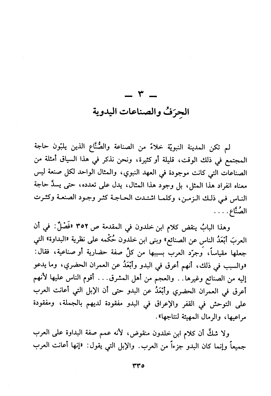 ولا شك ان كلام ابن خلدون منقوض، لأنه عمم صفة البداوة على العرب جميعاً وانما كان البدو جزءاً من العرب. والابل التي يقول: ((انها أعانت العرب…