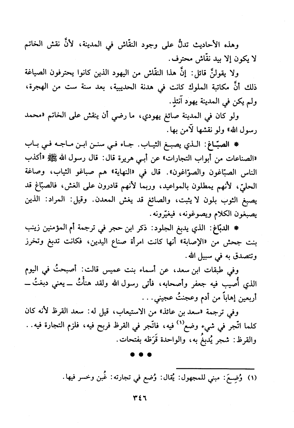 346…وهذه الاحاديث تدل على وجود النقاش في المدينة، لأن نقش الخاتم لا يكون الا بيد نقاش محترف.