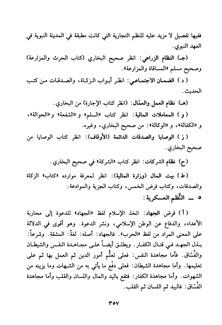 (جـ) النظام الزراعي: انظر صحيح البخاري (كتاب الحرث والمزارعة) وصحيح مسلم ((المساقاة والمزارعة)).