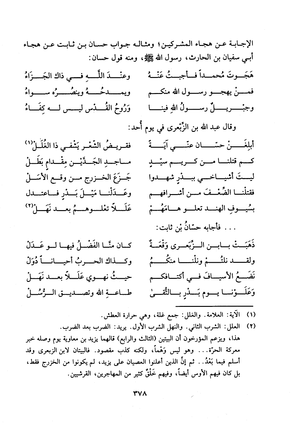 ... فأجابه حسان بن ثابت: