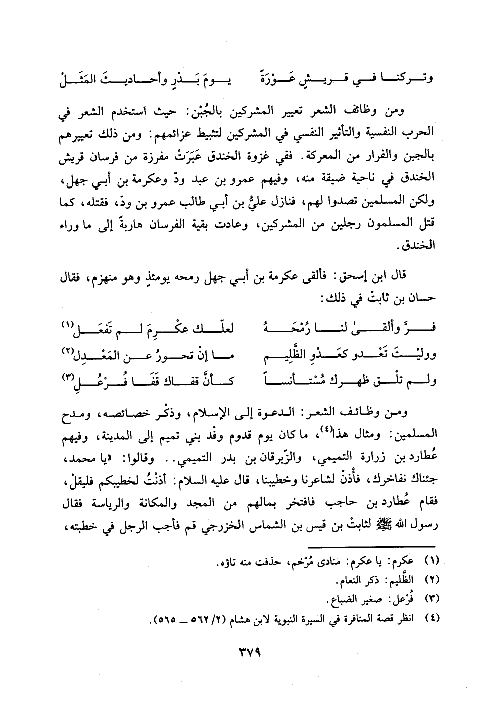 قال ابن اسحق: فألقى عكرمة بن ابي جهل رمحه يومئذ وهو منهزم، فقال حسان بن ثابت في ذلك: