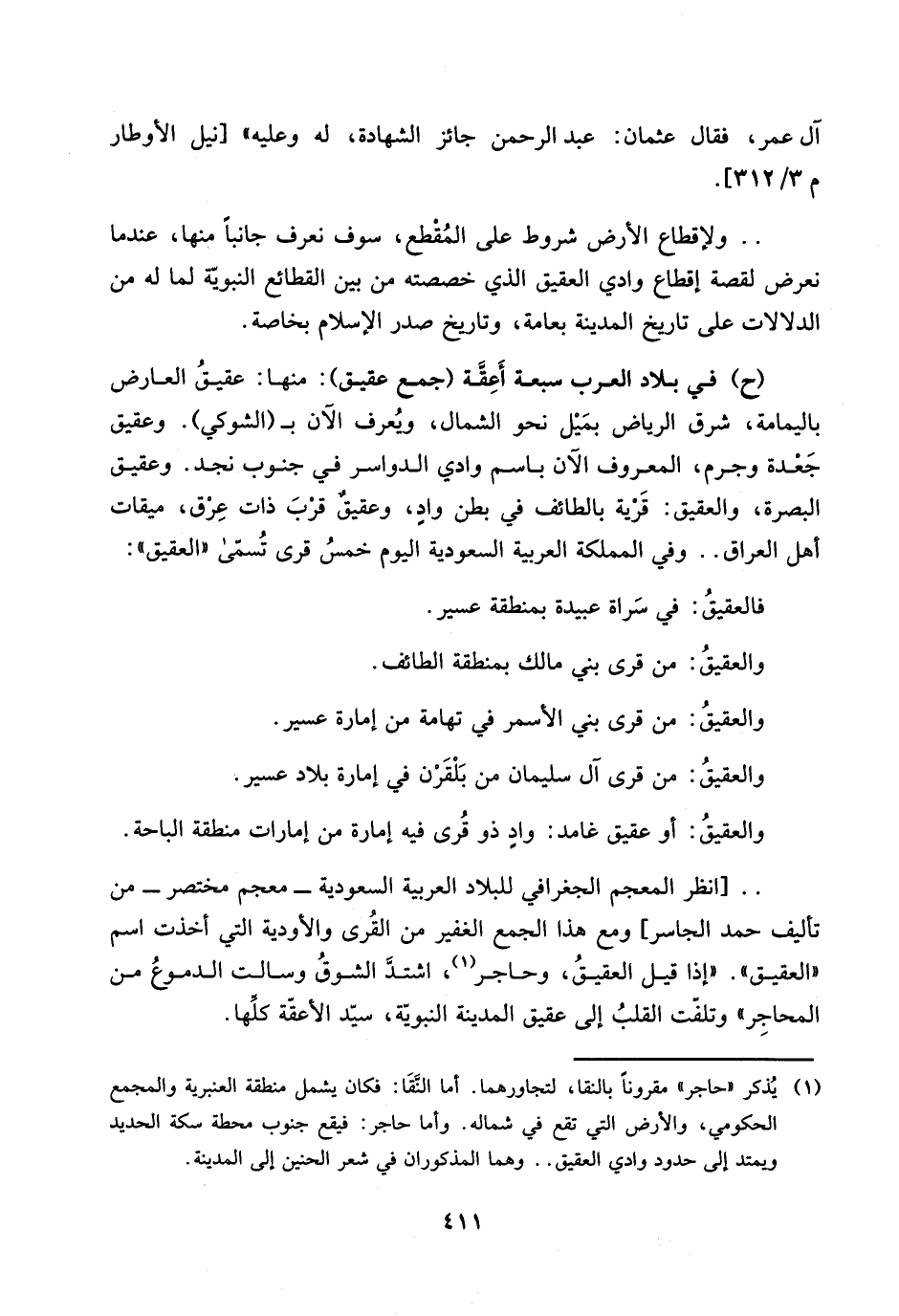 (1) يذكر ((حاجر)) مقروناً بالنقا، لتجاورهما. اما النقا: فكان يشمل منطقة العنبرية والمجمع الحكومي، والأرض التي تقع في شماله. واما حاجر: فيقع جنوب محطة سكة الحديد ويمتد الى حدود وادي العقيق .. وهما المذكوران في شعر الحنين الى المدينة.