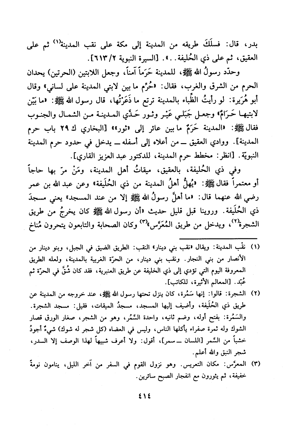 414…بدر، قال: فسلك طريقه من المدينة الى مكة على نقب المدينة (1) ثم على العقيق، ثم على ذي الحليفة .. )). [السيرة النبوية 2/ 613].