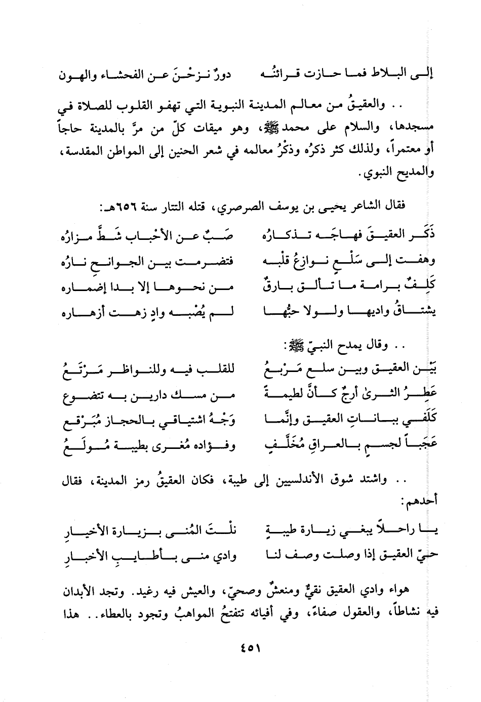 .. واشتد شوق الأندلسيين الى طيبة، فكان العقيق رمز المدينة، فقال أحدهم: