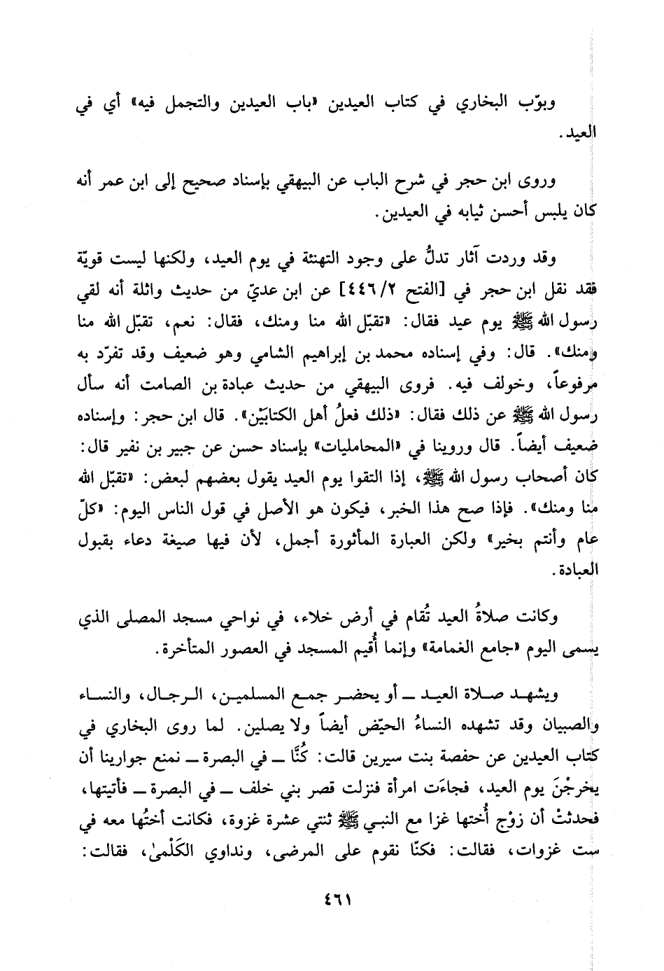 قال وروينا في ((المحامليات)) بإسناد حسن عن جبير بن نفير قال: كان أصحاب رسول الله صلى الله عليه وسلم، إذا التقوا يوم العيد يقول يعضهم لبعض: ((تقبل الله منا ومنك)).