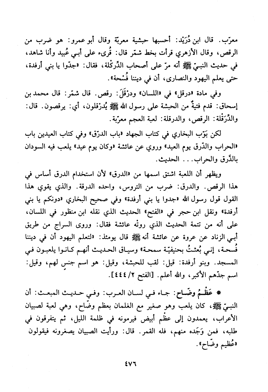 وفي مادة ((درقل)) في ((اللسان)) ودرقل: رقص. قال شمر: قال محمد بن إسحاق: قدم فتية من الحبشة على رسول الله صلى الله عليه وسلم يدرقلون، أي: يرقصون. قال: والدرقلة: الرقص، والدرقلة: لعبة العجم معربة.
