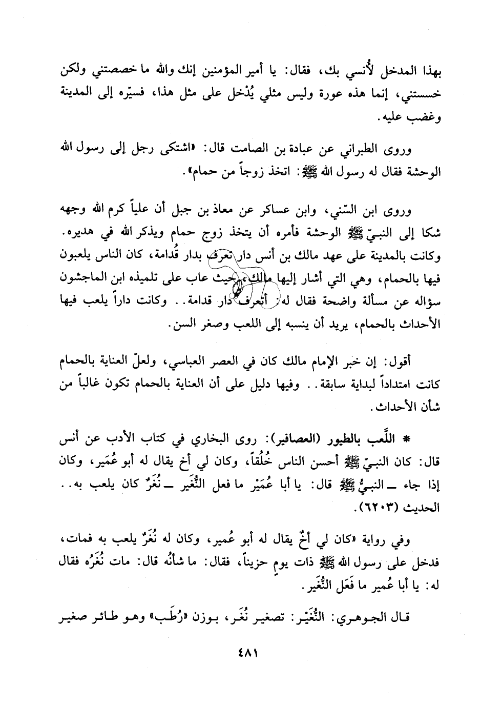 أقول: إن خبر الأمام مالك كان في العصر العباسي، ولعل العناية بالحمام كانت امتدادا لبداية سابقة .. وفيها دليل على ان العناية بالحمام تكون غالبا من شأن الأحداث.