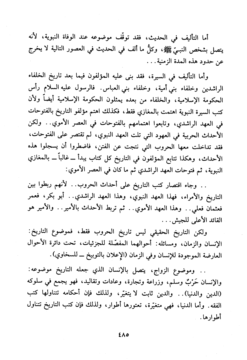 ... وموضوع الزواج، يتصل بالانسان الذي جعله التاريخ موضوعه: والانسان حرب وسلم، وزراعة وتجارة، وعادات وتقاليد، فهو يجمع في سلوكه (الدين والدنيا) .. والدين ثابت لا يتغير، ولذلك فان احكامه تتناولها كتب الفقه. واما الدنيا، فهي متغيرة، تعتورها اطوار، ولذلك فان كتب التاريخ تتناول اطوارها.