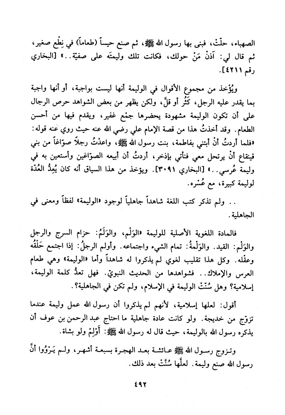 ولو كانت عادة جاهلية ما أحتاج عبد الرحمن بن عوف أن يذكره رسول الله بالوليمة، حيث قال له رسول الله صلى الله عليه وسلم: أولم ولو بشاة.