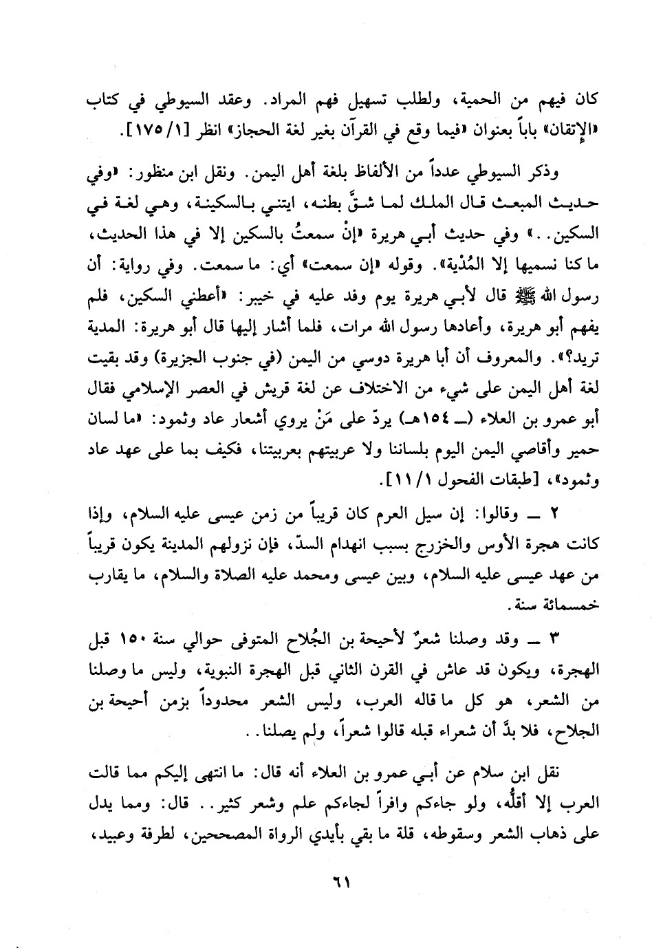 وعقد السيوطي في كتاب ((الإتقان)) باباً بعنوان ((فيما وقع في القرآن بغير لغة الحجاز)) انظر [175/ 1].