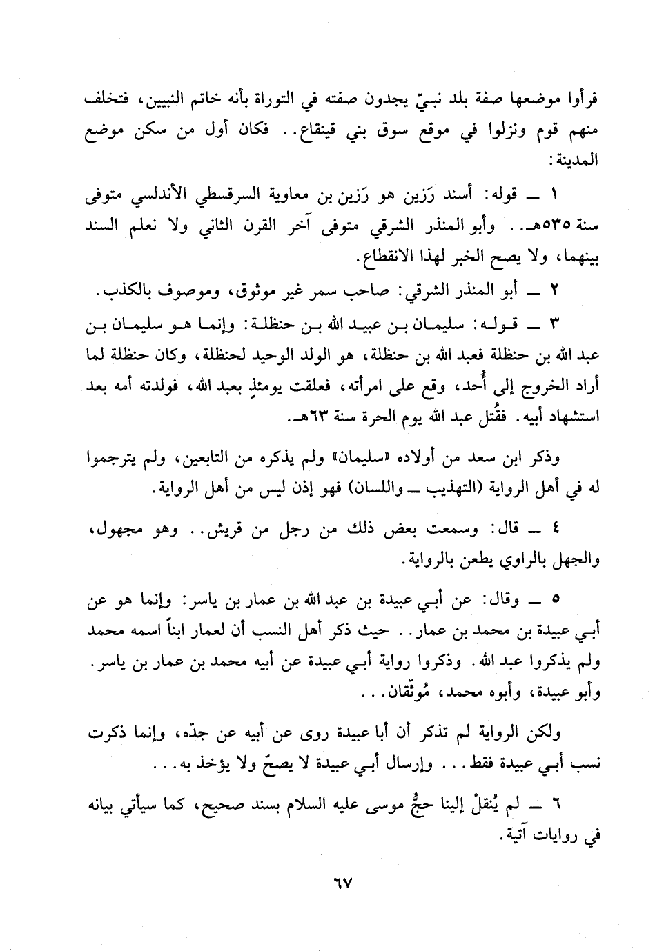 5 - وقال: عن أبي عبيدة بن عبد الله بن عمار بن ياسر: وإنما هو عن أبي عبيد بن محمد بن عمار .. حيث ذكر أهل النسب أن لعمار ابناً اسمه محمد ولم يذكروا عبد الله.