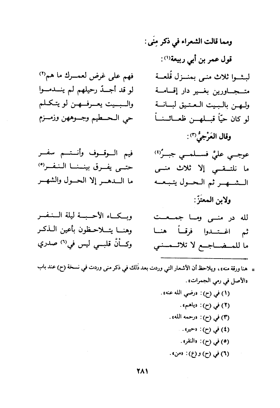 ومما قالت الشُّعَرَاءُ فِي ذِكْرِ مِنًى: