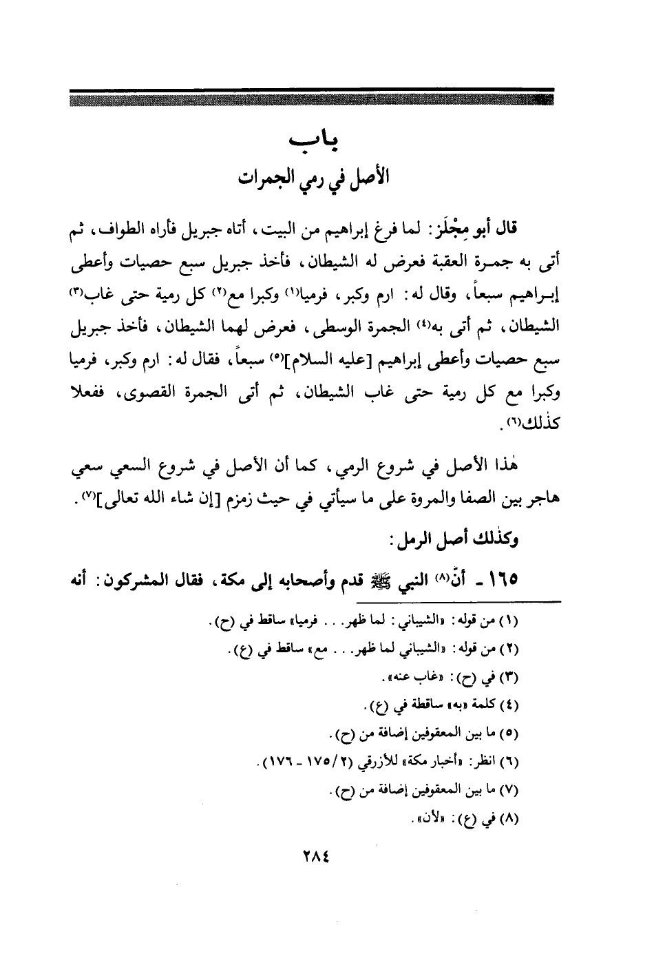 165- أَنَّ النَّبِيَّ صَلَّى اللَّهُ عليه وسلم قدم وَأَصْحَابُهُ إِلَى مَكَّةَ، فَقَالَ الْمُشْرِكُونَ: إِنَّهُ