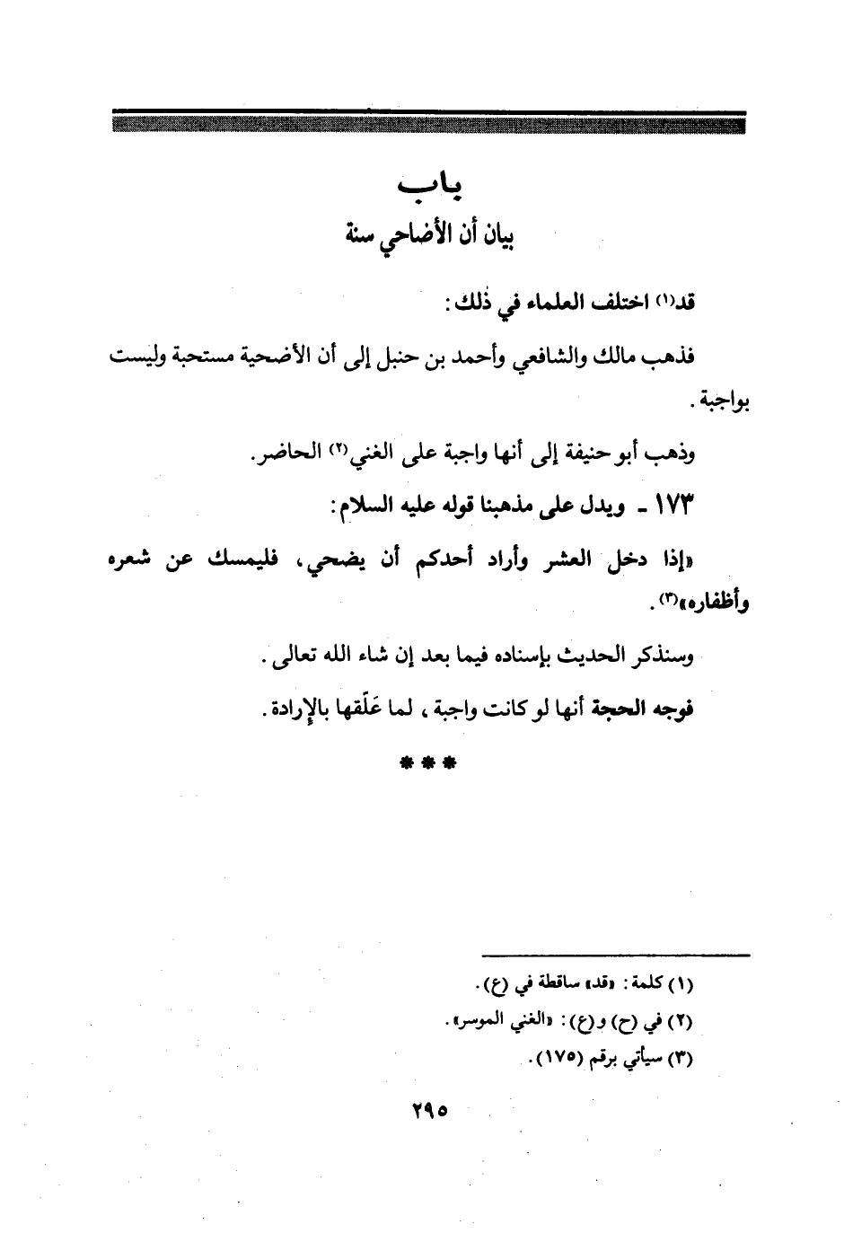 بَابٌ بَيَانُ أَنَّ الأَضَاحِيَ سُنَّةٌ