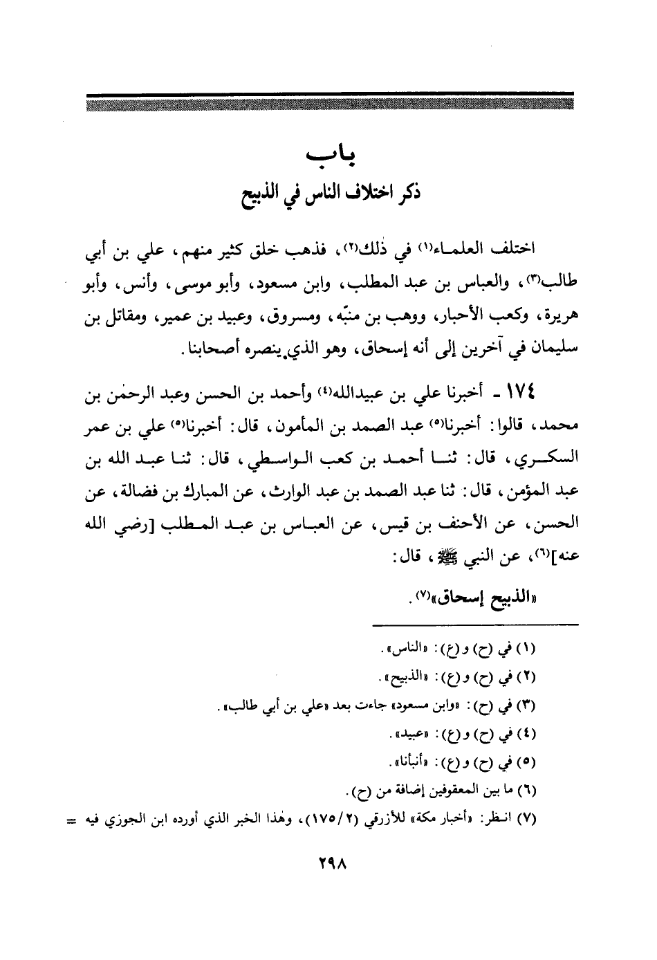 بَابُ ذِكْرِ اخْتِلافِ النَّاسِ فِي الذَّبِيحِ